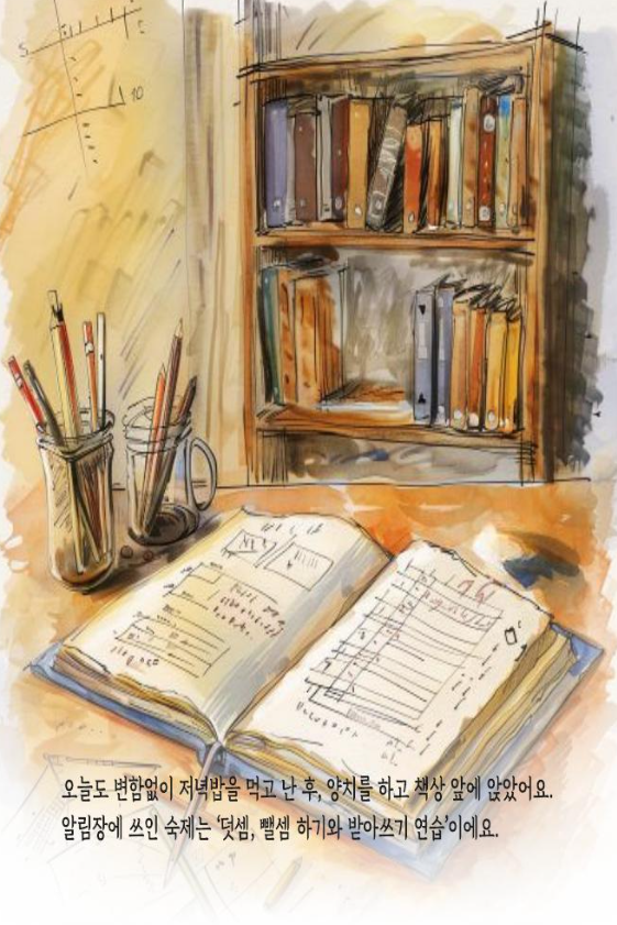 <늦게 피는 꽃송이>,<일기장 속 환상의 세상>,