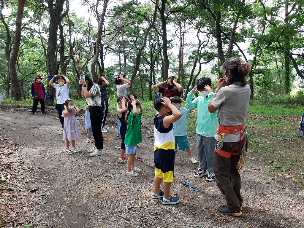 체험마을과 동호숲 소개 및 일정에 대한 안내를 듣습니다. 화장실 위치 및 숲에서 활동할 때 주의할 점과 안전교육을 듣습니다.