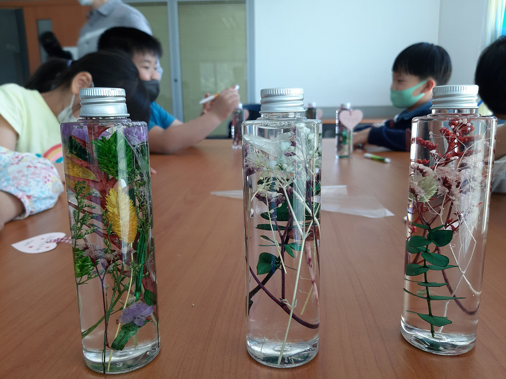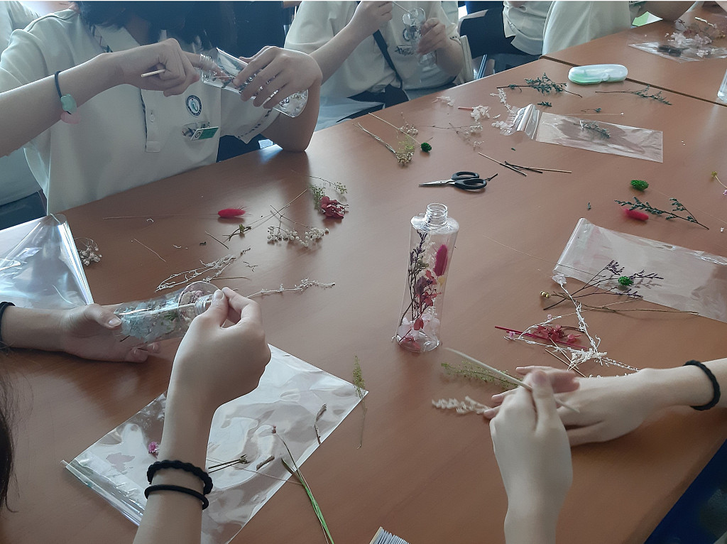 카드에 적힌 글귀를 발표하고 체험 소감을 나눕니다. 하바리움을 오래 감상하는 법과 주의사항에 대한 안내를 듣고 체험을 마무리합니다.
