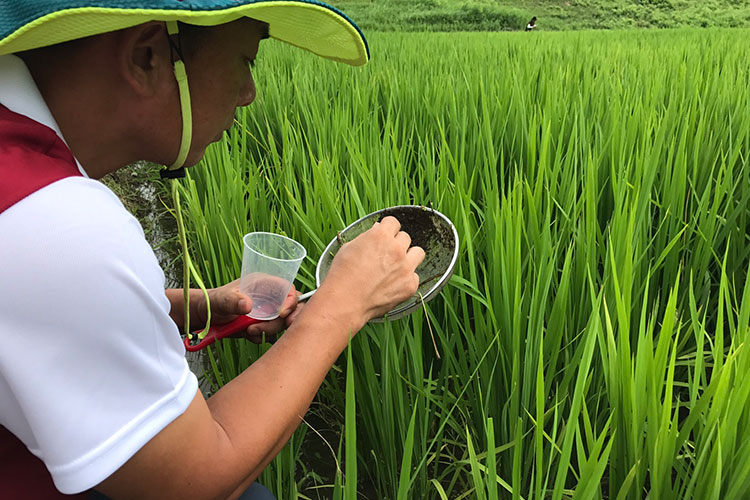의령 나루마을에서 논생태를 관찰하는 체험입니다.